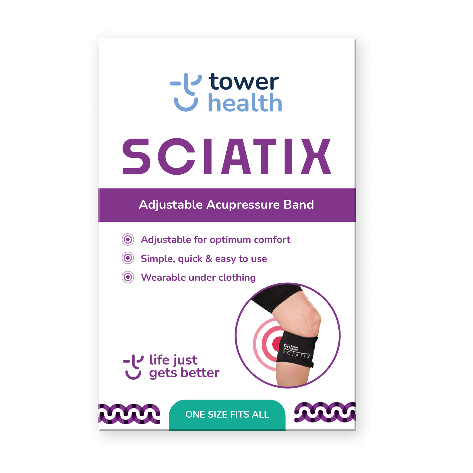 Sciatix is a Class I medical device designed to provide relief from sciatica symptoms. It's an acupressure band that you wear just below your knee, applying gentle pressure to specific points to help ease the pain.